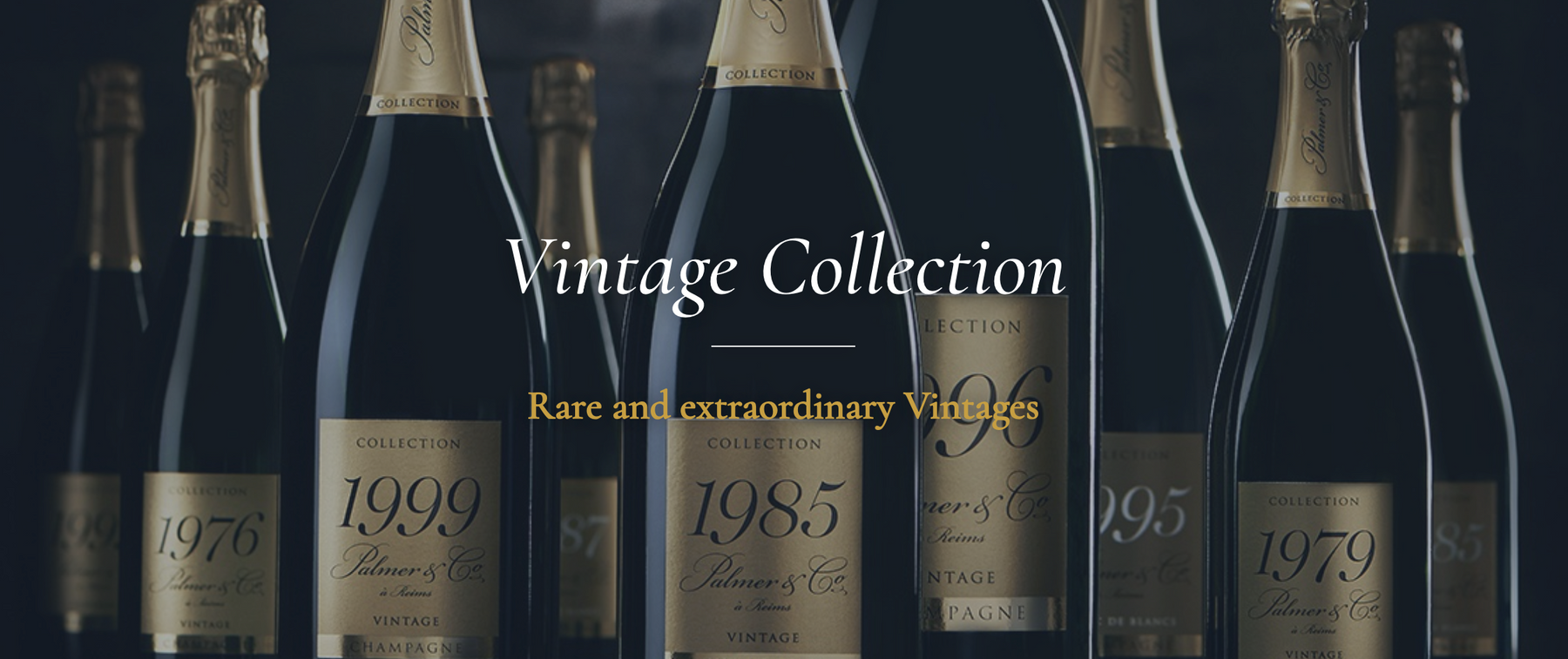 Palmer collection champagnes are made from the grapes of a single exceptional year. A prestigious collection of vintage champagnes, all of which are safeguarded in their 18-meter-deep chalk cellars. Each Collection is unique and possesses the distinctive, imitable qualities of that year’s outstanding grapes. These wines are elevated to their fullest expression through the know how, the experience of Palmer & Co and of course through the time factor, so closely connected to the inimitable Palmer style. Consisting exclusively of Grand and Premier Crus (Chardonnays and Pinots Noirs) from the Montagne de Reims area, Palmer Collection Vintage is always a subtle association of a particular climatic year and the Palmer style. The cuvées have been selected by cellar master Xavier Berdin and Palmer's four oenologists for their superior quality and ageing potential. Started in 1947 when Palmer was established, the collections also include some of the best vintages of the last 40 years: 1999, 1996, 1987, 1985, 1979 or 1976.