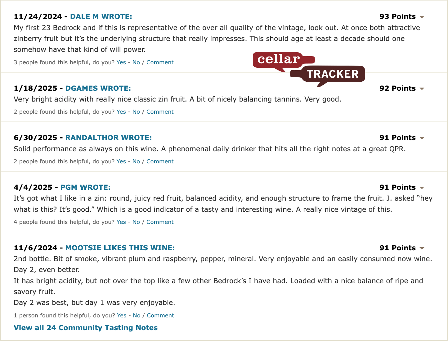 "The 2023 Zinfandel Old Vine was raised in 600-gallon foudre with a small proportion (8%) in new oak, and it’s roughly 90% Zinfandel along with an eclectic field mix. The nose opens to bright peppery spice, fresh cut flowers, and black raspberries, with deeper notes of fresh sanguine earth coming through. The palate is full-bodied yet restrained, with a detailed structure and length with a mountainous feel. It’s a great lens into the range they produce here at Bedrock and a tremendous value. Drink 2025-2032." - Audrey Frick (Jul 2025)