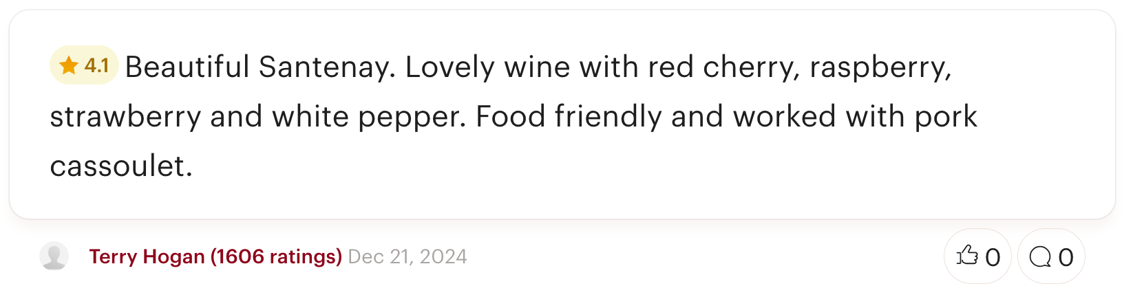 Pillot owns a sizable 1.4-hectare parcel of Pinot Noir planted in 1970 in this Santenay lieu-dit, and his gentle extraction (100% whole clusters, employing only pump-overs) and no-new-oak élévage allow the friendly, juicy red fruit to take center stage over the rusticity typical of this appellation. The wine offers spice-drenched flavors of mentholated cherry, with a sense of rippling energy and mouthwatering acidity.